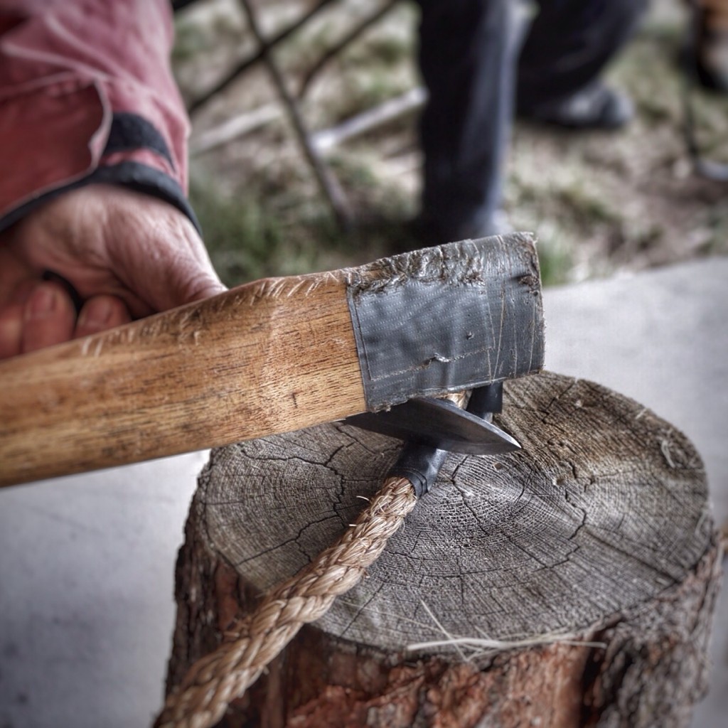 A highlight of the class was learning how to cut rope in the field. The short version is to take your rope and wrap it in tape (to prevent fraying). Take your knife and a mallet, and whack until you’ve cut it in half. Boom!