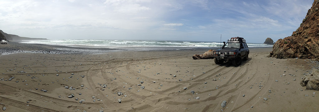 I finally made it out to Usal Beach. It’s a trip I’ve wanted to take for a while to exercise my right as a backwoods country bumpkin, driving on the beach! I recommend going to Willits and cutting over on HWY20 so you can hit Fort Bragg on your way through. It’s a beautiful town. As soon as you hit it, you’ll be charmed by the ocean-side appeal. Here is the route I took (click link to open map in a new window).