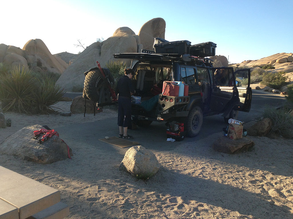 It was a big travel day! Corrie and I decided to be among the first to rise and roll away from Joshua Tree. We had miles to cover! The sun rose fast, and I started to get that uneasy feeling we were burning daylight. You know – when the smell of the new day starts transitioning to full daytime and you aren’t so alone as the critters and folk start rising. It wasn’t long before we had our gear well on the way to being packed.