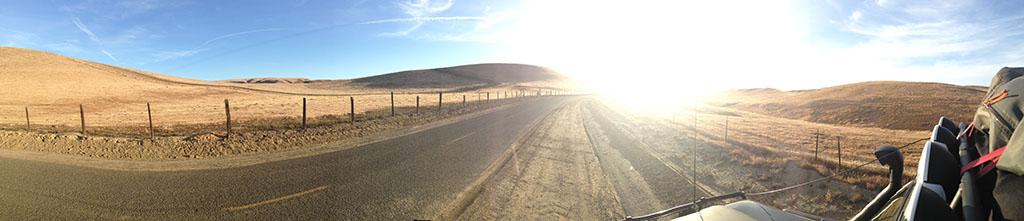 It wasn’t long before we were on the 10, then through LA for a quick visit with one of Corrie’s hippie friends, and finally I-5 headed north. Now, you will notice there is a void of pictures from Coalinga, Los Banos, and the like. It was a solid day of travel. OK, OK, just one. Picture a lot of this: